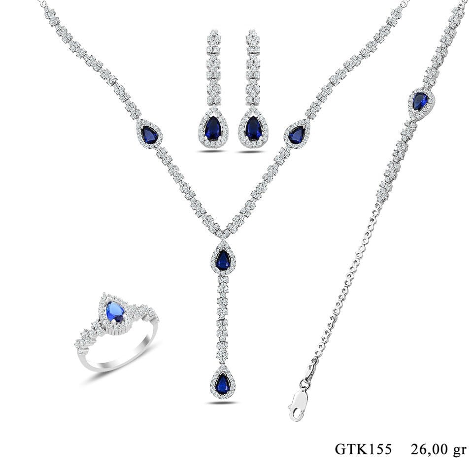 BARIŞ TAKI 925 Ayar Gümüş Damla Montör Su Yolu Bayan Düğün Seti